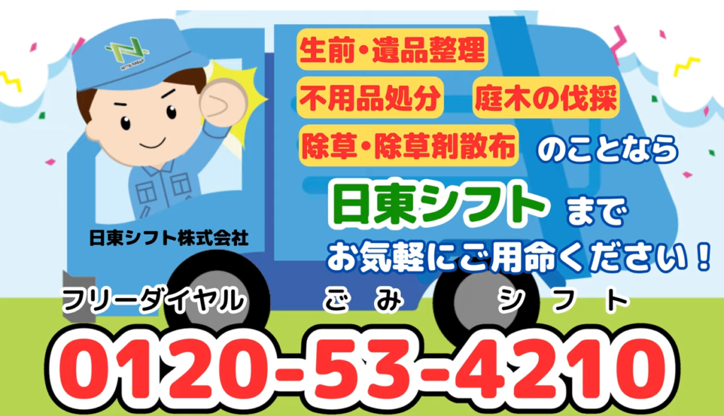 - 事業内容:一般廃棄物収集運搬業 →片付け、不用品処分、終活